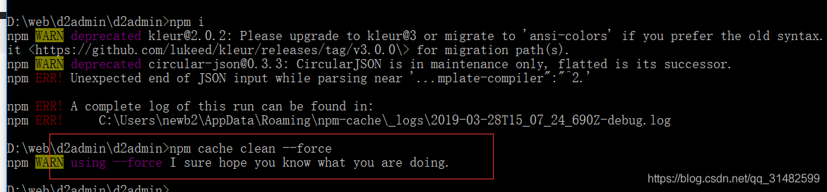 | npm ERR! npm ERR! If you're sure you want to delete the entire cache, rerun this command with --force.