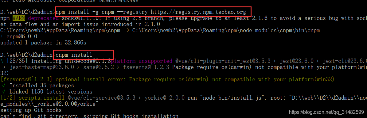 | >npm install -g cnpm --registry=https://registry.npm.taobao.org # 安装完成后 >cnpm install