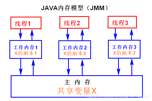 - 不同线程之间无法直接访问其他线程工作内存中的变量,线程间变量的传递需要通过主内存来完成。