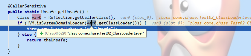 在自己代码中执行 “Unsafe unsafe = Unsafe.getUnsafe();” 语句会抛异常,这也印证了上面说的。debug如下