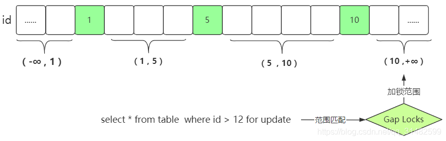 上面语句实际锁住的区间是 大于12 的区间,即: