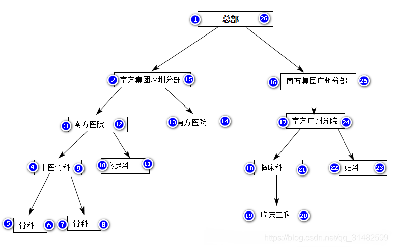 - 如:南方集团深圳分部的子孙节点为的条件为:l_node > 2 and r_node < 15