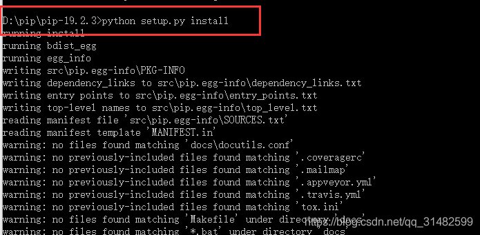 Dos窗口进入解压目录执行 python setup.py install ,最后出现Finished processing dependencies for pip == 版本号即标识安装成功