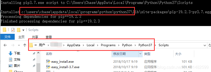 安装完成后,会输出pip的安装路径,找到lib的同级目录Scripts,复制该目录并添加到环境变量