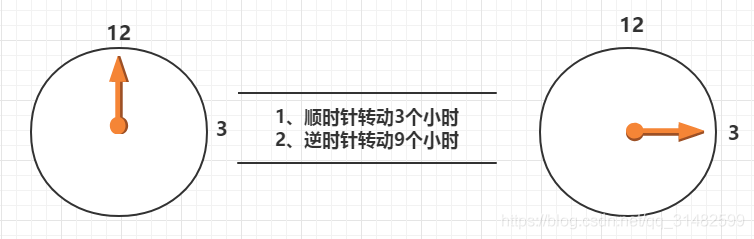 假设要将一个零点整的时钟 调整带到三点钟,有如下两种做法
