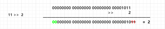 将二进制的各个位全部右移指定位数,左边移空位都0(不考虑正负),右边丢弃