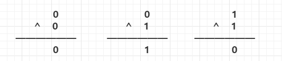 只有当2个数对应位的值不一样(“异”),该位运算结果为1,否则0。
