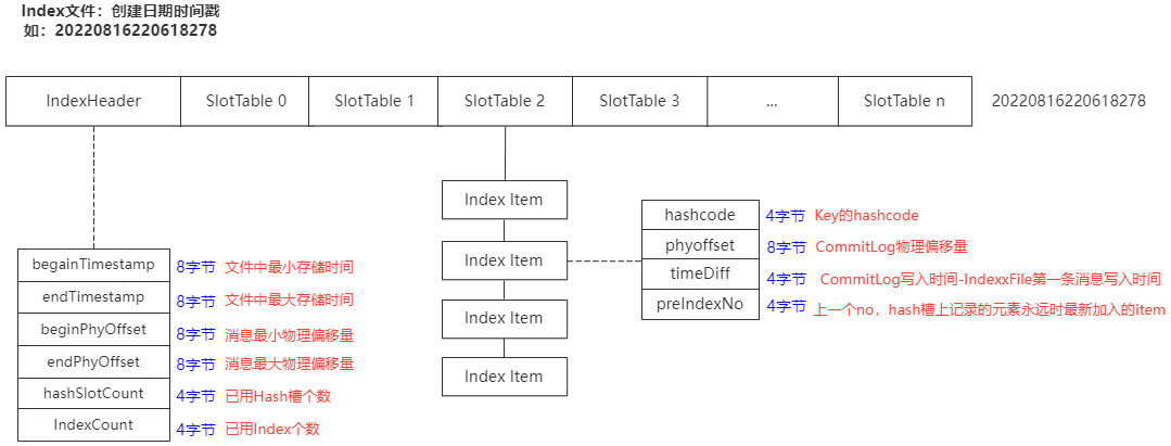 - IndexFile的底层存储设计为在文件系统中实现HashMap结构,底层实现为hash索引