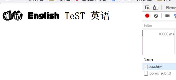 | <html> <head> <meta charset="utf-8"> <style type="text/css"> @font-face { font-family: "pomo"; src: url("D:\\000\\pomo_sub.ttf") format("truetype"); font-style: normal; font-weight: normal; } .test { font-family: 'pomo'; } </style> </head> <body> <h1 class="test">测试 English TeST 英语</h1> </body> </html>