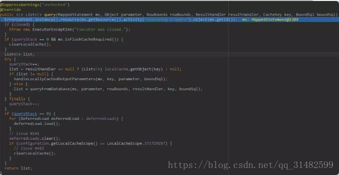 我们重点关注代理执行器的query方法,也就是我们 SimpleExecutor 执行器。该方法如下: