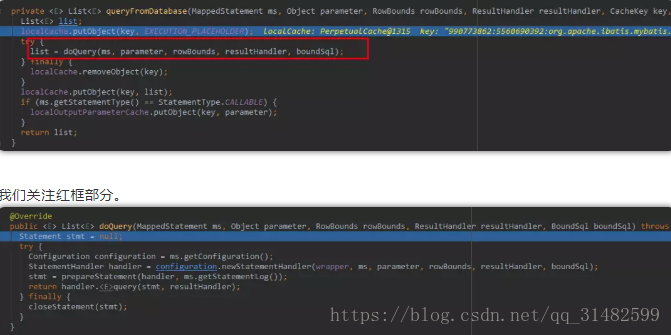 4、如果返回的list不是null,则处理缓存和参数。否则调用queryFromDatabase 方法从数据库查询。