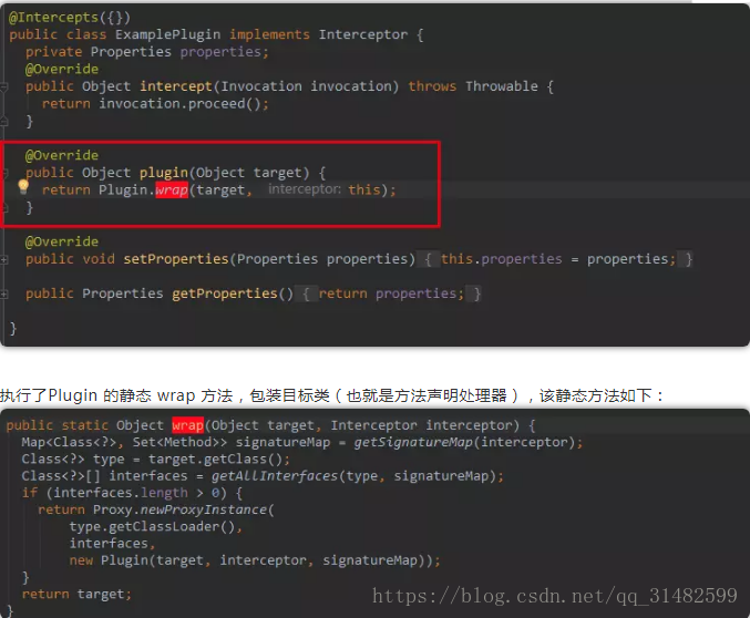 这里就是动态代理的知识了,获取目标类的接口,最后执行拦截器的invoke方法。有机会和大家再一起探讨如何编写拦截器插件。这里由于篇幅原因就不展开了。