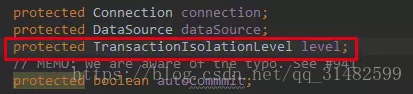 可以看到,该类都是有关连接和事务的方法,比如commit,openConnection,rollback,和JDBC 的connection 功能很相似。而我们刚刚看到的level是什么呢?在源码中我们看到了答案: