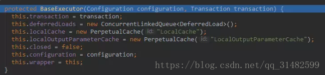 我们再看看默认执行器的构造方法,2个参数,一个是 Configuration, 一个是事务对象。该构造器调用了父类 BaseExecutor 的构造器,我们看看该方法实现: