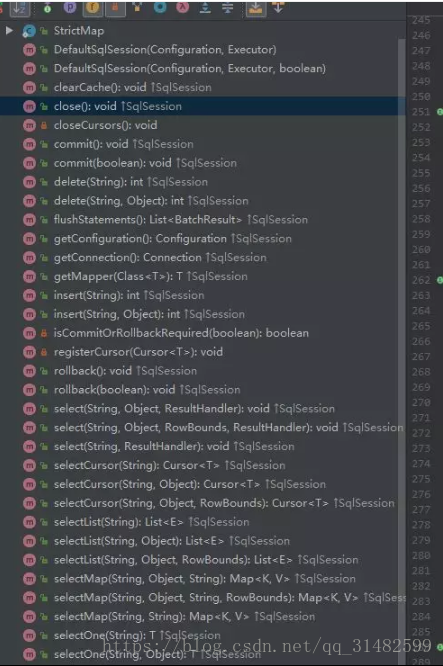 现在,我们回到 openSessionFromDataSource 方法,我们已经有了执行器,此时创建 DefaultSqlSession 对象,携带 configuration, executor, autoCommit 三个参数,该构造器就是简单的赋值过程。我们有必要看看该类的结构: