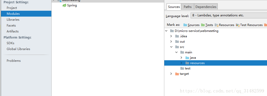 </build> - file - project structure - modules –选中项目 —dependencies 点击右侧 + 号 —jars or directories 选中resource 文件夹 确定即可