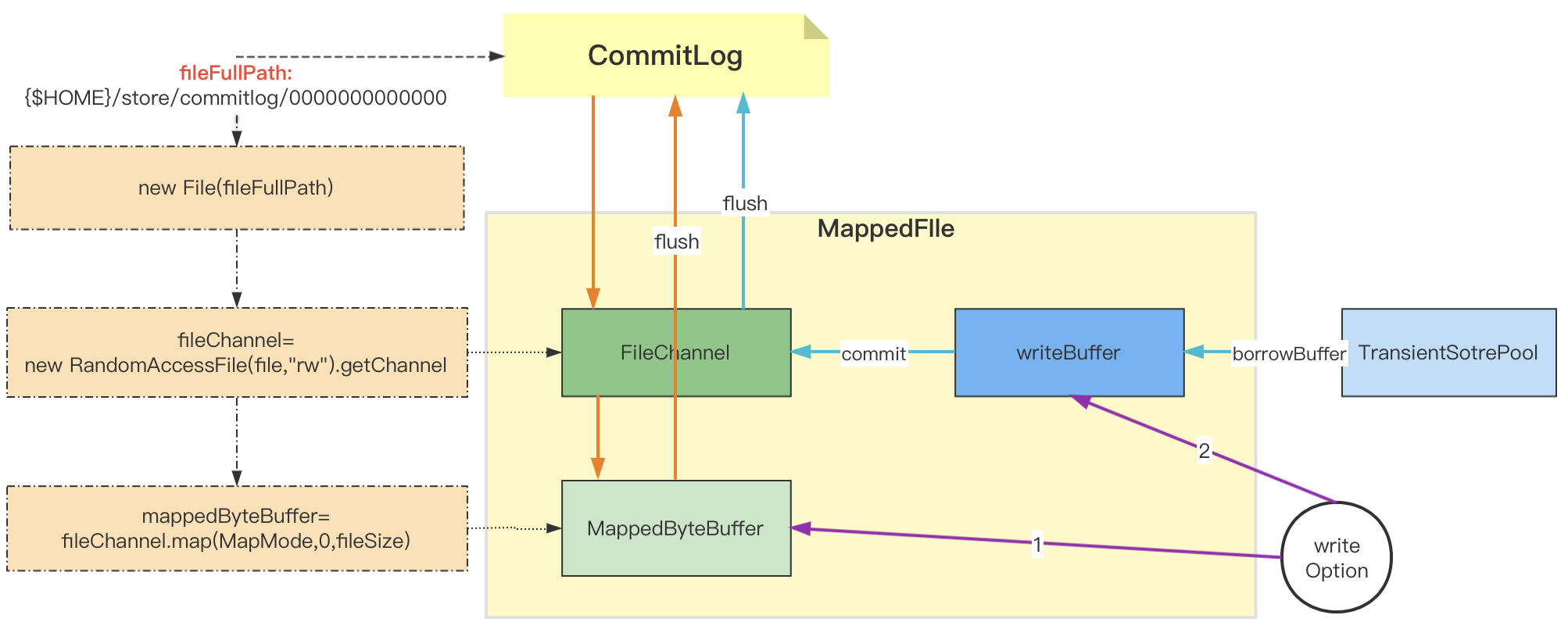MappedFile文件获取(CommitLog) 上篇文章中主要分析了文件文件刷盘前的一些准备工作,遗留了MappedFile相关细节的分析,该篇中主要针对MappedFile相关逻辑进行分析,首先了解一下MappedFile 文件获取的细节时怎样的。