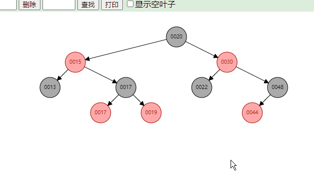 - d、把指针定义到祖父节点设为当前要操作的节点,目的是为了平衡修改颜色其它节点不满足红黑树原则的情况(通过更改颜色或左旋右旋平衡,以此类推)